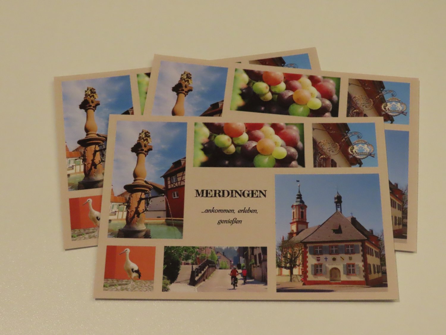 Flyer und Postkarten im Bürgerbüro erhältlich! In unserem Bürgerbüro finden Sie zu den gewohnten Öffnungszeiten auch eine Auswahl an Flyern und Broschüren zu verschiedenen Unternehmungen und Freizeitaktivitäten. Außerdem können Sie zum Preis von 1,50 € / je Stück eine Merdinger Postkarte erwerben. |